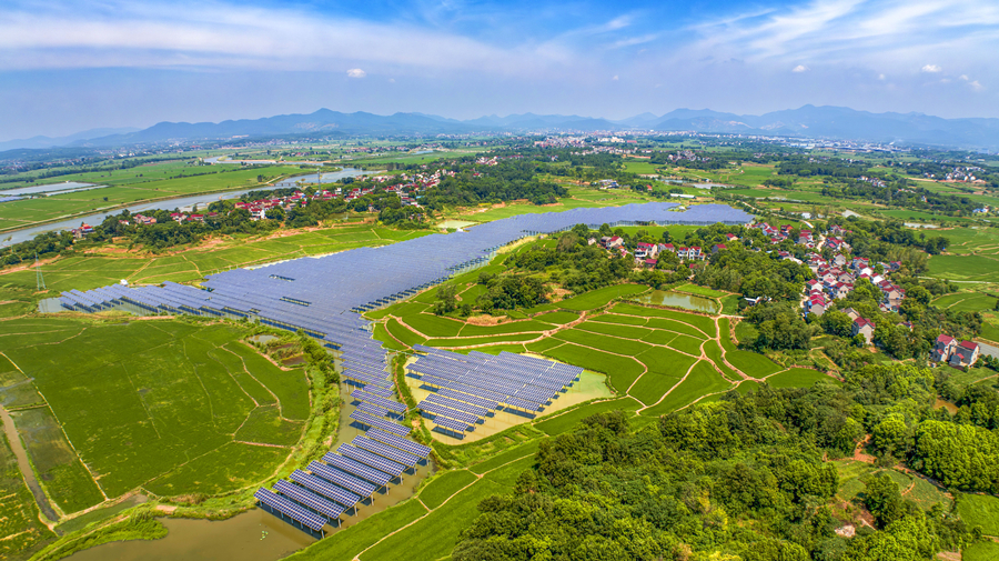 安徽省銅陵市220千伏湴陽水面光伏電站。新華網發(郜小兵 攝)